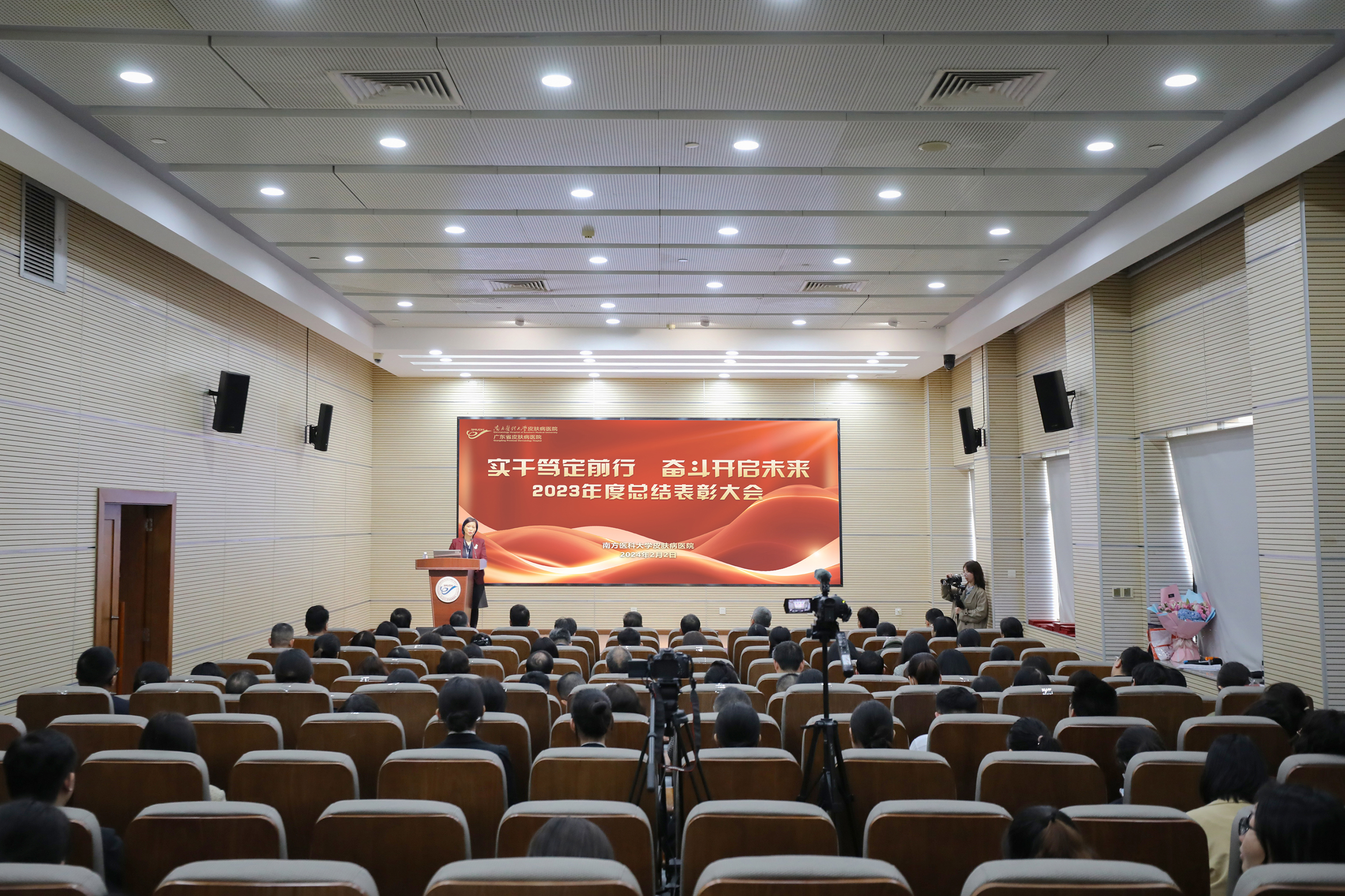 2月2日下午,南方医科大学皮肤病医院隆重举行2023年度总结表彰大会。会议回顾总结了2023年医院主要工作,部署了2024年重点工作,对表现突出的先进集体和个人进行表彰。医院领导班子、中层干部、双聘教授和职工代表参加了会议。会议由党委副书记郑道城主持。