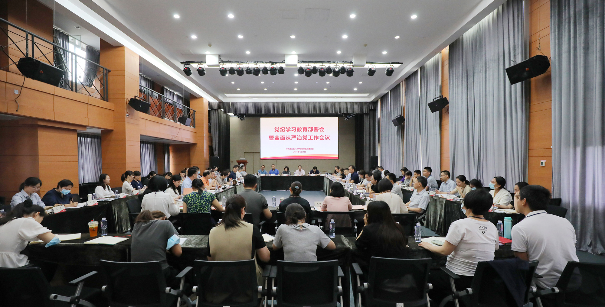 4月25日,我院召开党纪学习教育部署会和2024年全面从严治党工作会议,医院领导班子、党支部书记、科室主任、副主任、护士长等参加了会议。会议由医院党委副书记郑道城主持。