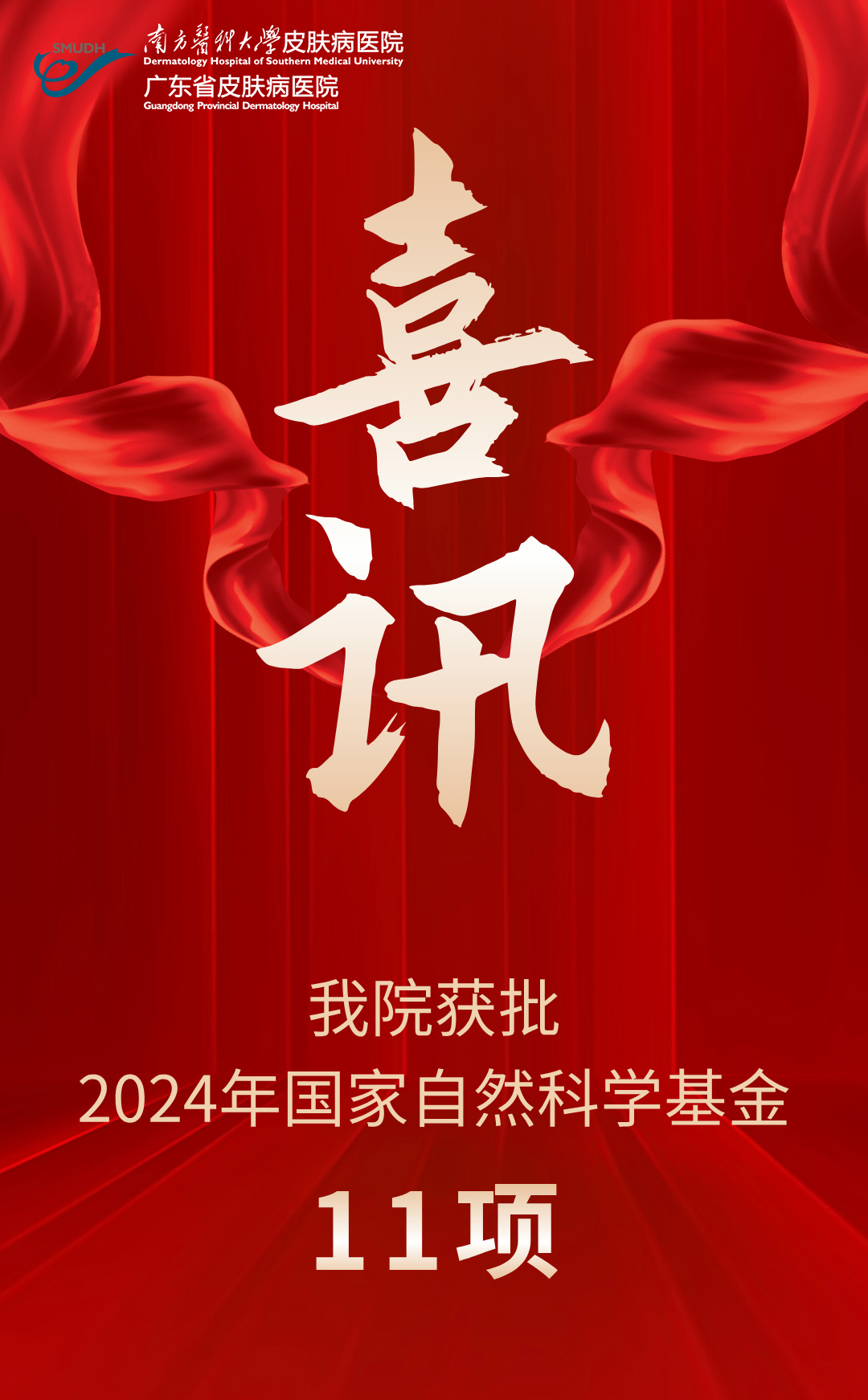 近日,2024年度国家自然科学基金评审结果揭晓,南方医科大学皮肤病医院共获11项资助,其中面上项目5项、青年基金项目6项。