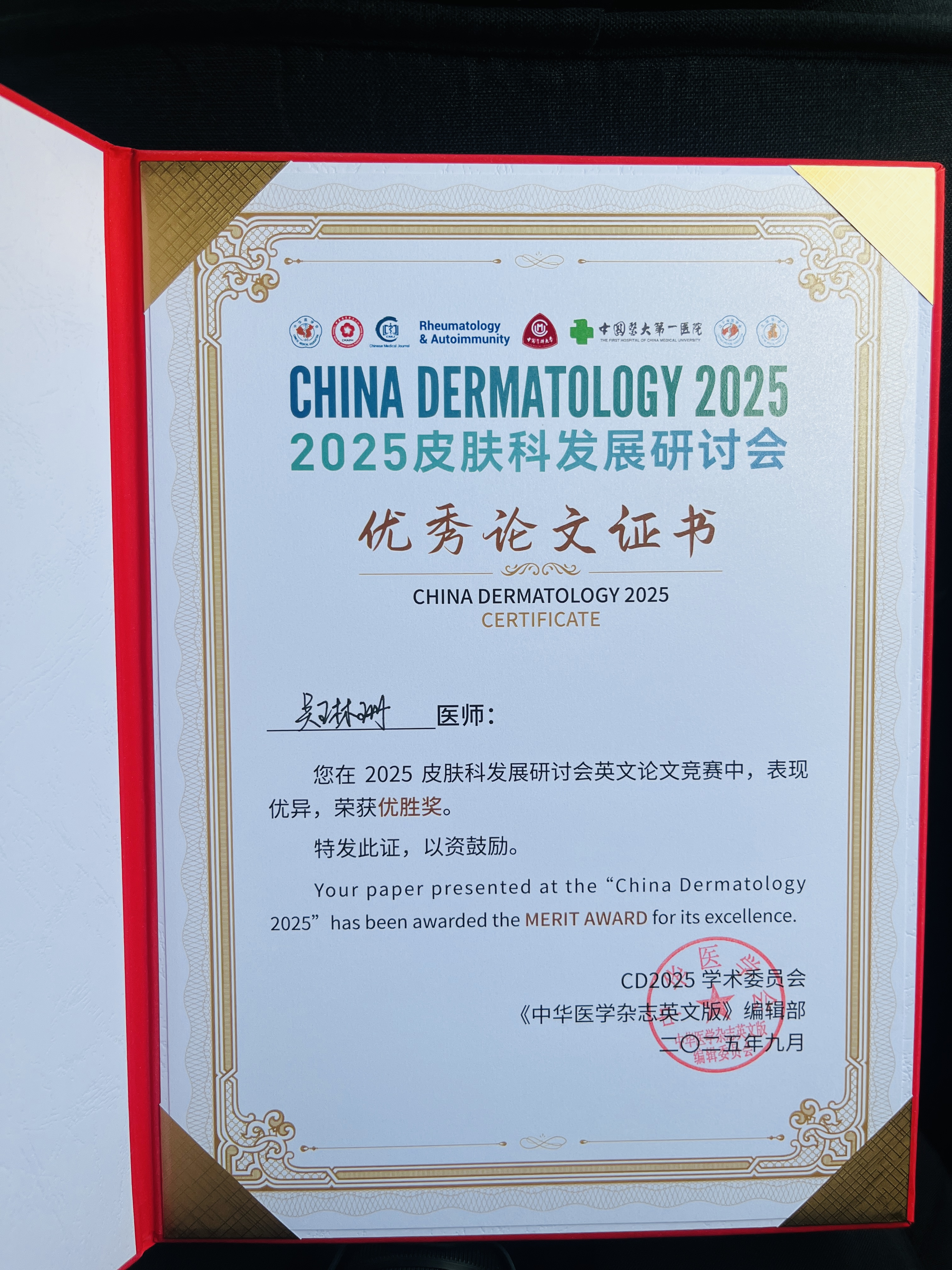 化妆品检测中心研究成果荣获 2025 中国皮肤科发展研讨会优秀论文大赛优胜奖