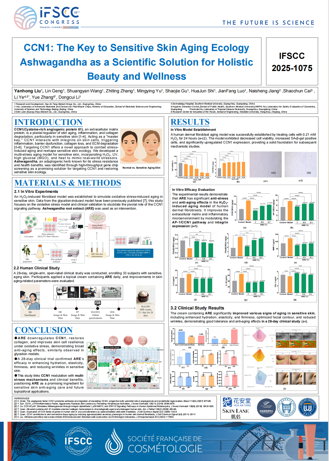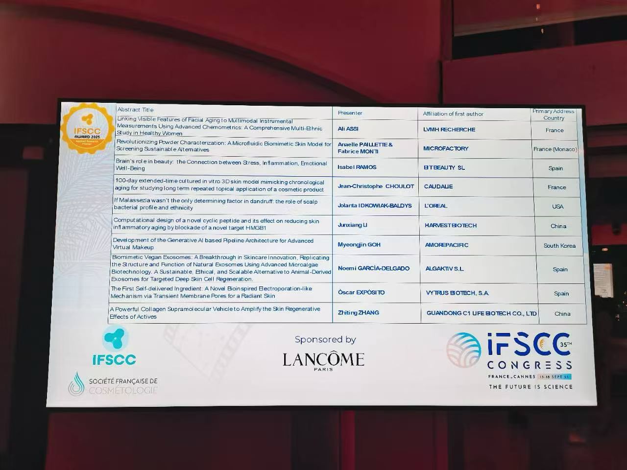国际化妆品化学家学会联盟(International Federation of Societies of Cosmetic Chemists,简称 IFSCC)是全球化妆品科学领域最具权威性与影响力的学术组织。IFSCC 国际化妆品科学大会汇聚全球化妆品领域顶尖科研人员、企业专家及创新力量,围绕化妆品科技前沿开展学术交流与成果分享,是该领域学术水平最高、国际影响力最大的会议之一,所展示的科研成果代表全球化妆品科学前沿发展水准。